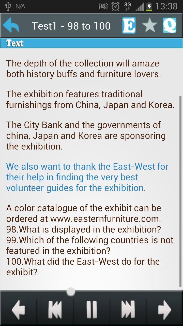 真实测试模式:测试模式模拟真实的TOEIC考试环境,帮助用户提前适应考试节奏。软件还提供暂停功能,让您可以根据自己的时间安排灵活完成测试,无需担心被打断。
