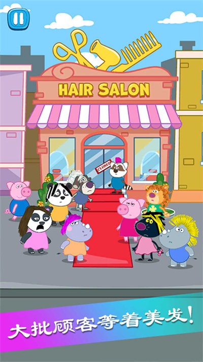 操作很简单的哦,直观的触控界面让新手也能快速上手,能够快速的达到你想要的效果,快来帮助佩奇给大家理各种时髦的造型吧。客人们都想要时髦的造型,这里工具很齐全,你想使用什么工具直接点击屏幕就好,从基础剪发到高级染烫一应俱全。游戏主要围绕佩奇来玩,在这里,帮助生病的造型师,给各位客人理发,体验经营美发店的乐趣。为顾客设计打扮,获得顾客的满意评价,积累口碑解锁更多高级美发工具和装饰品。