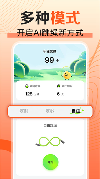 -自由模式:随心所欲的运动方式,不受时间和次数限制,特别适合热身或放松时使用,记录每一次跳跃。