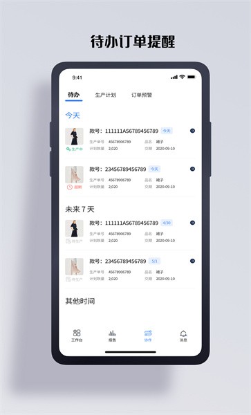 订单信息全透明,进度追踪,每个生产环节实时更新,异常情况智能预警