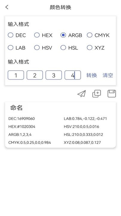 颜色转换功能:支持多种色彩格式转换,包括RGB、HEX、CMYK、LAB、HSV、HSL、XYZ等数值输入,一键转换为您需要的色值。