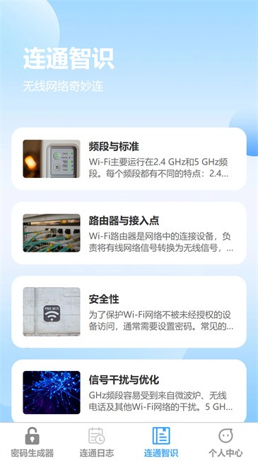 光速连通是一款融合前沿科技与人性化设计的智能网络应用,旨在为用户提供安全、高效、便捷的网络服务体验。作为您的数字生活助手,它不仅具备强大的网络管理功能,更注重培养用户的网络安全意识。通过直观的界面设计和智能化的操作流程,光速连通让复杂的网络管理变得简单易用。从基础的WiFi连接到高级的网络安全防护,从实时的网络状态监测到丰富的知识学习资源,光速连通全方位满足您对网络生活的各种需求,让您在任何网络环境下都能享受安全、稳定的连接体验。