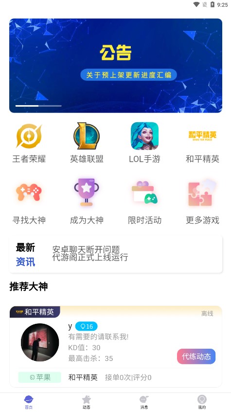 提供丰富的动态分享功能,可以随时查看心仪代玩的游戏动态和服务评价。通过动态了解代玩的游戏风格和服务特点,帮助你做出更好的选择。