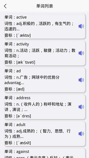 覆盖中小学、高考、四六级、考研、雅思托福等各个阶段的核心词汇;
