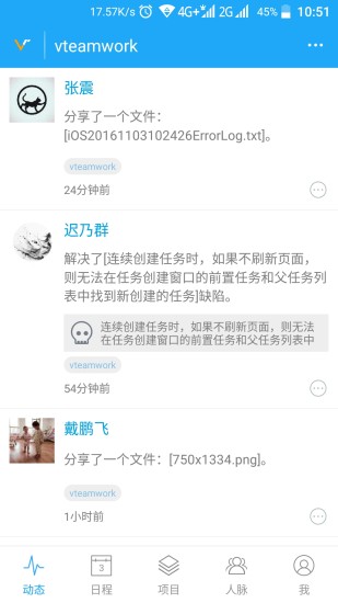 动态,项目所有变化的信息流与入口,实时推送项目更新,确保团队成员信息同步;