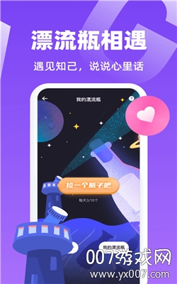 匿名漂流瓶功能让你可以畅所欲言,找到能理解你的知己。每个瓶子都经过严格审核,确保内容健康向上。