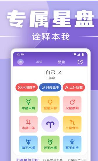 应用采用清新扁平化设计,图标与配色符合星座主题,夜间模式保护用眼健康。安装包经过深度优化仅15MB大小,低配手机也能流畅运行,后台耗电量不足同类产品三分之一。每日推送个性化星座提醒,支持生成专属运势海报分享至社交平台,是年轻人探索星象奥秘的必备神器。