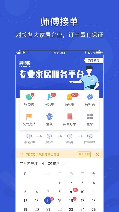 聚师傅app是一款专业高效的家居服务接单平台,致力于为家居企业和消费者提供全方位的解决方案。平台汇聚了大量经验丰富的师傅资源,涵盖家居配送、安装维修、日常保养等各类服务需求,订单量稳定有保障。用户只需通过手机即可轻松下单,享受便捷的一站式服务体验。无论是新房装修还是日常维护,聚师傅app都能满足您的需求,让家居生活更省心。现在下载注册还能享受新人优惠,快来体验吧!