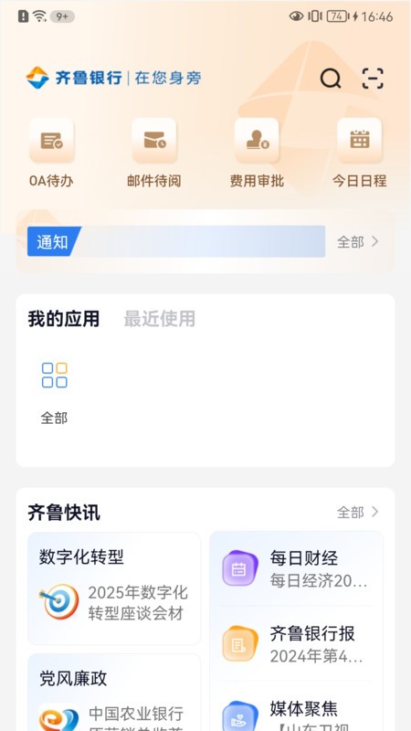 实现了日常办公的全面移动化,行内各项通知、文件、简报、新闻、待办等实时推送,确保信息传递的及时性和准确性;