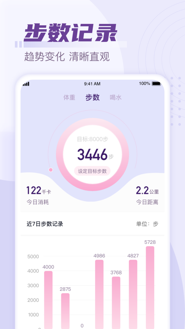 【体重记录】提供专业的体重追踪功能,支持多时段记录和数据对比分析,是减脂增肌的好帮手。配合运动数据,帮助您科学规划健康生活方式。