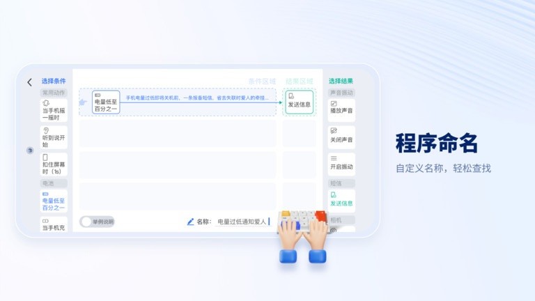 轻连APP的核心功能主要体现在三个方面:首先,它具备强大的场景识别能力,可以精准捕捉用户当前的使用场景,自动提供个性化的功能服务。这种智能化的设计理念彻底颠覆了传统手机应用的使用方式,带来了全新的交互体验。其次,它允许用户创建完全自定义的操作规则,通过设置时间、位置、事件或应用程序启动等多样化的触发条件,实现个性化的自动化操作。最后,用户可以根据需求设置各种自动执行的操作,包括但不限于调整设备设置、管理应用程序、处理消息通知、执行定时任务等,全面满足日常使用中的各种需求。