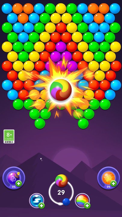 泡泡龙派对手游最新版是一款风靡全球的休闲益智类手机游戏,它将经典的泡泡龙玩法与创新元素完美结合,为玩家带来前所未有的消除体验。在游戏中,玩家将化身泡泡射击高手,通过精准的角度调整和策略性发射,将五颜六色的泡泡球射向顶部,当3个或更多相同颜色的泡泡相连时即可消除。游戏拥有数百个精心设计的趣味关卡,难度循序渐进,既考验玩家的手速和反应力,又能锻炼逻辑思维能力,适合各个年龄段的玩家轻松上手。