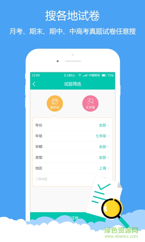 试卷筛选功能同样强大,可以按照年份、地区等条件快速找到所需试卷,包括中高考真题、模拟题、自主招生试题、期中期末试题以及单元测试等。所有试题都支持收藏、离线下载和查看详细解析,每道题目都配有考点描述,方便学生理解题目考查的知识点。