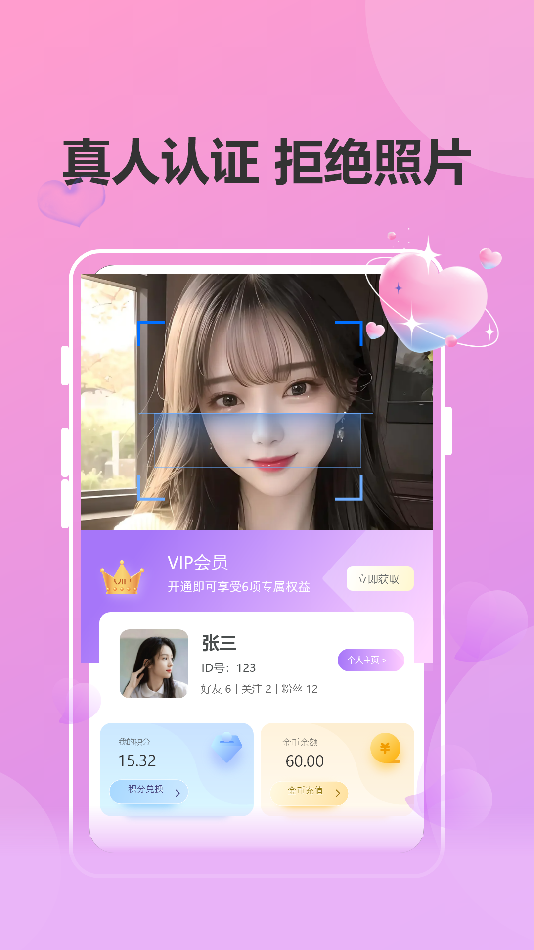 人性化的设计,让您的用户体验更加流畅;每个交互细节都经过上百次测试优化,操作简单直观。一个开放的社交平台可以让你更自由地表达自己;支持多种内容形式发布,打造专属个人主页展示独特魅力。快速身份验证使您的信息更加真实可信!采用人脸识别+证件核验双重认证,确保用户资料真实性。