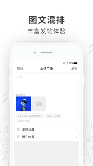 * 支持图文混排的发帖模式,让您的分享更加生动有趣
