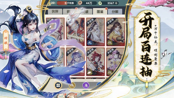 抽卡:游戏提供普通抽卡和高级抽卡两种方式。普通抽卡消耗金币或少量元宝,适合日常积累;高级抽卡则有机会直接获得SSR品质的顶级武将,并且十连抽必得一个SSR。建议玩家合理规划资源,在合适的时机进行抽卡。