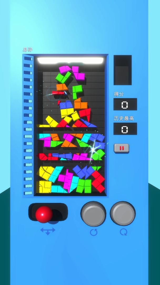 在游戏中让你体会到绝望,能消除几排全凭运气,只要合理就能消除,也不需要紧密相连,物理引擎带来的随机性让每局游戏都充满变数