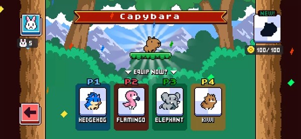 游戏采用直观的操作方式,玩家可以使用方向键配合四个功能按键实现角色的全方位移动、攻击、二段跳跃以及冲刺闪避等动作。每个动物角色都拥有独特的属性和专属技能,玩家需要深入了解这些特性才能充分发挥角色的战斗力,比如魔法松鼠擅长远程攻击,而犀牛战士则拥有强大的近战能力。