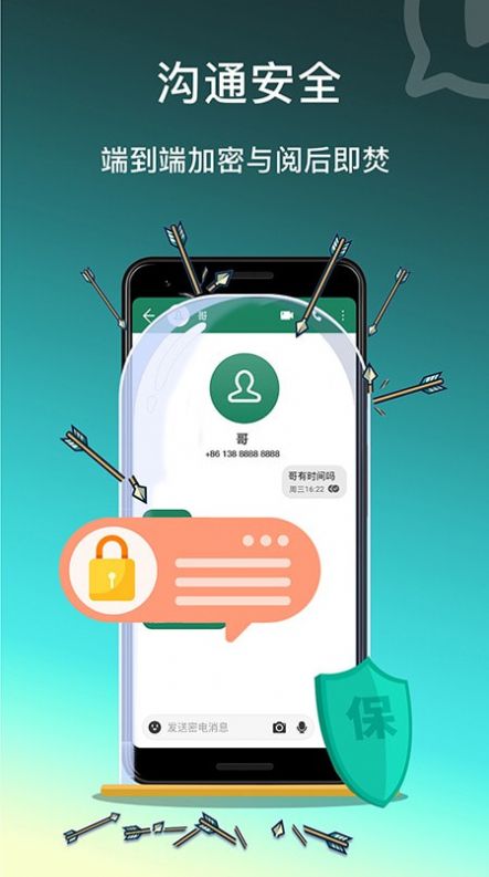 【产品特点】采用银行级端到端加密技术,配合阅后即焚功能,为您的每一条消息提供双重安全保障;