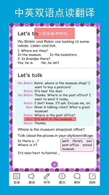 课本点读:学生可以跟随名师朗读课文,标准发音帮助加深记忆,提升口语能力。