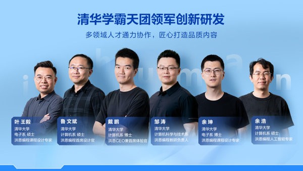由一众清华学霸领衔的编程课程研发团队,专业计算机科技、、儿童内容、动画美术等多领域人才通力协作,匠心打造智能编程内容,为孩子们编程学习之路保驾护航。团队成员均具有丰富的教育经验,深谙儿童心理和学习特点。