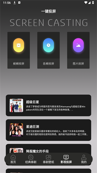用户通过泰剧TV投屏app可以把软件当中的内容投送到更大的屏幕当中,提高用户的观看体验。软件功能全面,资源丰富,是泰剧爱好者的必备神器,无论是观影还是投屏体验都非常出色。