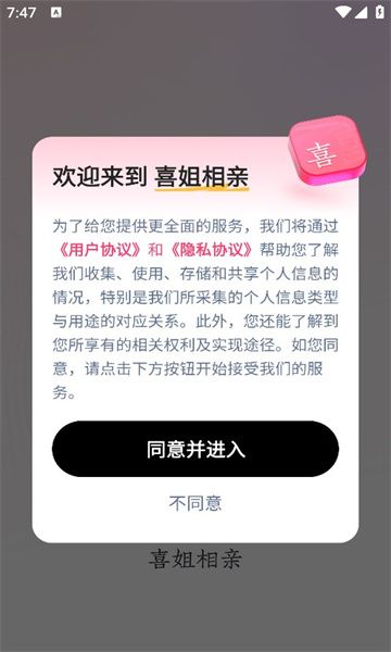 喜姐相亲是一款专注于为单身人士提供高效、安全、有趣的相亲交友服务的专业平台。在这里,用户可以结识来自不同背景的优质异性,通过轻松愉快的聊天互动,快速找到心仪的另一半。平台严格筛选用户信息,确保每一位会员的真实性,让交友过程更加安心可靠。无论是寻找兴趣相投的朋友,还是期待一段浪漫的恋情,喜姐相亲都能满足您的需求,助您早日脱单!