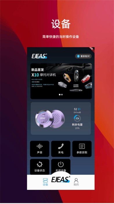 ejeas爱骑仕app是一款专为摩托车骑行者设计的智能通讯软件,通过与专业硬件设备连接,为用户提供实时语音收听功能,极大提升了骑行过程中的安全性和便利性。无论是单人骑行还是团队出行,这款应用都能满足不同场景下的通讯需求,让骑行者享受更自由、更高效的沟通体验。