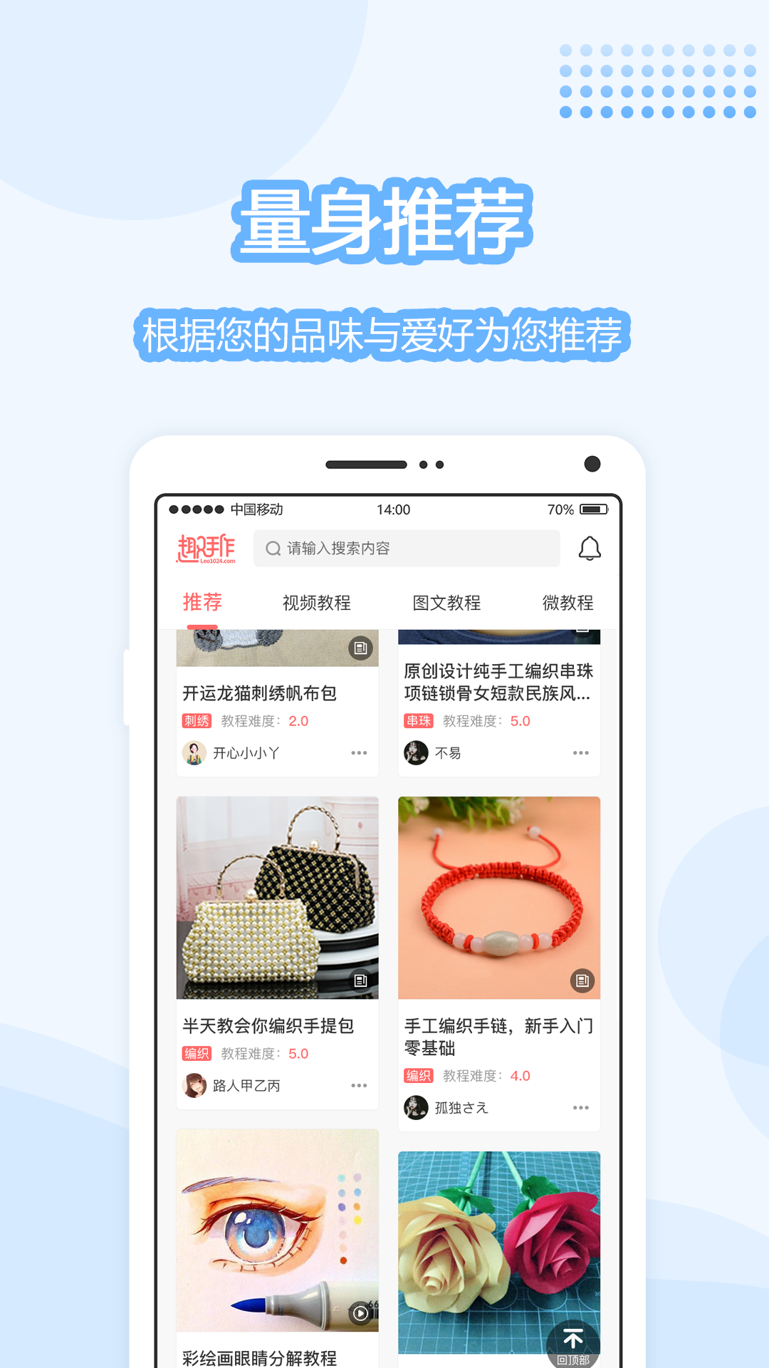 根据您的品味与爱好为您推荐。智能算法会分析您的浏览记录和收藏偏好,精准推送您可能感兴趣的手工类型和教程内容。支持自定义筛选条件,快速找到心仪内容。