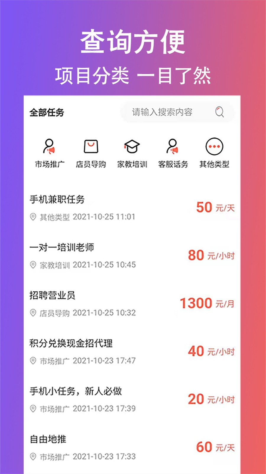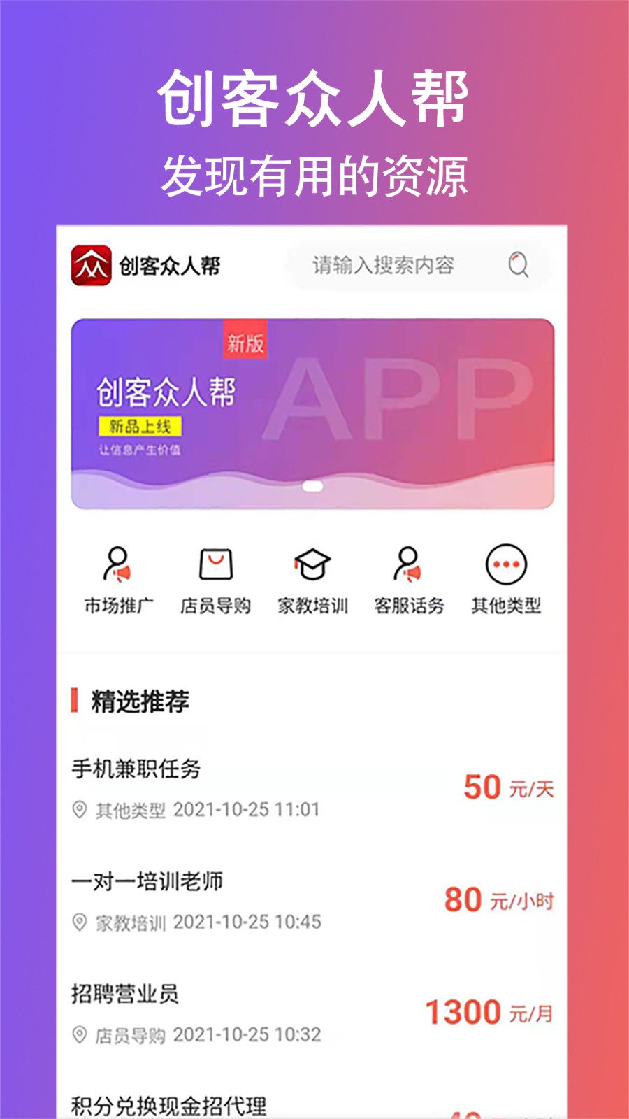 创客众人帮app是一款功能强大的综合性平台,专为求职者、企业以及想要通过兼职赚取额外收入的人群设计。作为一款高效的人才招聘与任务悬赏应用,它能够帮助企业便捷发布招工信息,精准设置岗位要求和福利条件,依托平台的广泛用户基础,快速触达大量求职者,如同"人才磁石"般吸引优质人才,助力企业充实团队力量,推动业务发展。同时,对于求职者而言,这里提供了丰富的兼职和全职机会,让用户能够轻松找到适合自己的工作。无论你是正在寻找工作的求职者,还是需要招聘人才的企业HR,这款实用软件都能满足你的需求,赶快下载体验,解锁职场与生活的更多可能性!