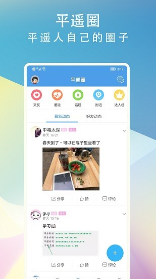 提供平遥资讯、吃喝玩乐、推荐、平遥天气等丰富功能,还新增了社区互动板块,用户可以分享生活点滴,结识同城好友。