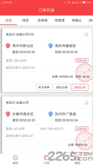 ·订单查看页面展示完整运输信息,包括货物详情、路线规划、费用构成等关键数据。