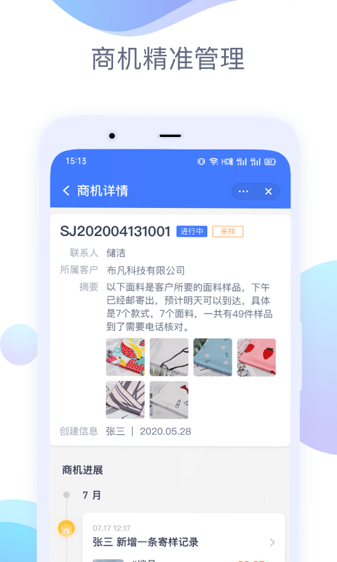 系统支持商品全生命周期管理,包括创建、编辑、信息维护等功能。提供海量存储空间,永久保存商品数据。支持商品标签打印和便捷推广功能,客户可直接在线发起调样申请,商家实时接收提醒,快速响应客户需求。