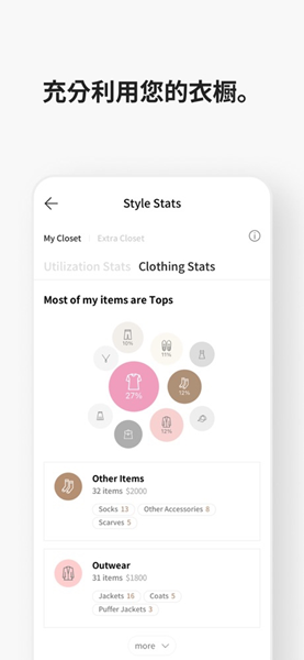 - 每月生成详细的穿着报告,包括最常穿单品、衣橱利用率、性价比分析等,帮助你更了解自己的时尚偏好。