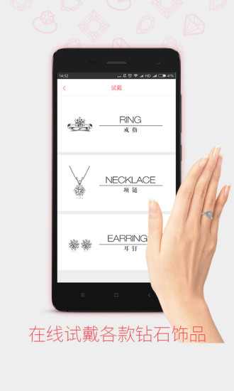 3、新增共享钻石服务,提供大牌钻石饰品免费借戴体验。