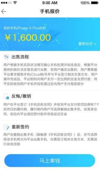 用户提交申请,进行手机估值报价,平台审核通过后,需绑定银行卡作为打款银行卡并线上签订回收合同。合同采用电子签名技术,具有同等法律效力;