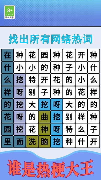 游戏难度适中,既能让新手玩家轻松上手,又能给资深玩家带来足够的挑战。玩家在游戏中不仅能体验到成功的乐趣,还能了解到更多的网络热词和社会热点知识,增长见识。