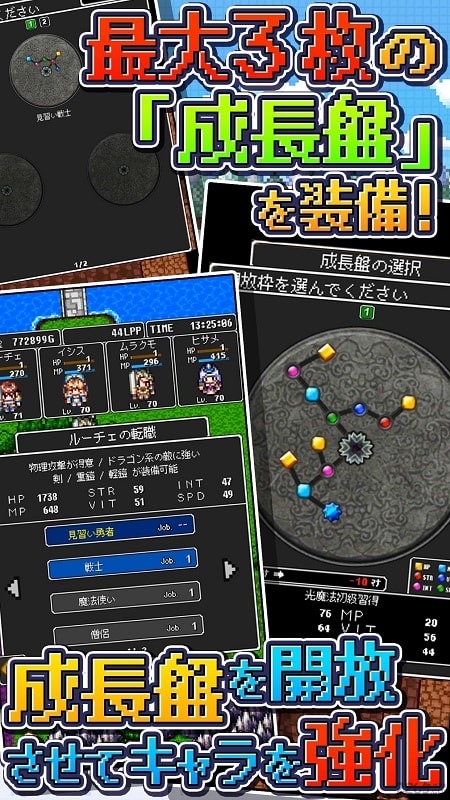 游戏最具特色的就是其深度的角色培养系统。玩家可以通过转职系统来培育角色,每个职业都拥有独特的技能树和战斗风格。随着角色等级的提升,技能效果会不断增强,让战斗体验更加丰富。通过合理的转职规划,玩家可以打造出拥有多种能力的全能角色,或是专精某一领域的专家角色。游戏还引入了创新的"成长盘"系统,玩家可以自由选择强化方向,无论是优先解锁特定技能,还是提升行动速度等基础属性,都能根据个人喜好进行定制。这种高度自由的成长系统让每个玩家都能打造出独一无二的角色配置。战斗系统采用经典的回合制模式,但加入了丰富的策略元素,玩家需要根据敌人类型和战场环境灵活调整战术。