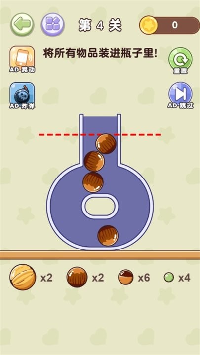 《装瓶子》是一款广受好评的创新休闲益智游戏,融合了物理模拟和逻辑推理的趣味玩法。游戏包含20个以上精心设计的关卡,每个关卡都经过巧妙构思,带来截然不同的解谜体验。独特的脑筋急转弯式关卡设计充满创意,让玩家在轻松愉快的氛围中挑战自我。游戏操作简单直观,适合各个年龄段的玩家体验,是休闲时光的最佳伴侣。