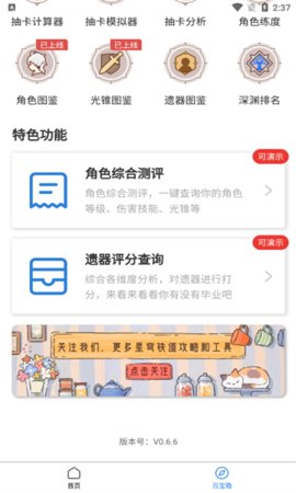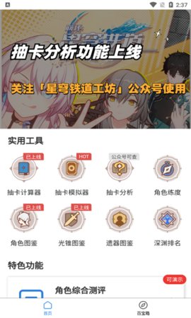 星穹铁道工坊最新手机版是一款专为《崩坏:星穹铁道》玩家打造的辅助工具,集数据查询、抽卡分析和游戏攻略于一体。这款软件以简洁直观的界面和强大的功能为核心,帮助玩家快速掌握游戏技巧,优化角色培养策略。无论是新手入门还是资深玩家进阶,都能在这里找到实用的资源。软件特别注重多终端适配,让玩家在手机、平板等设备上都能流畅使用,同时提供零氪玩家的专属攻略,让每位玩家都能享受游戏的乐趣。