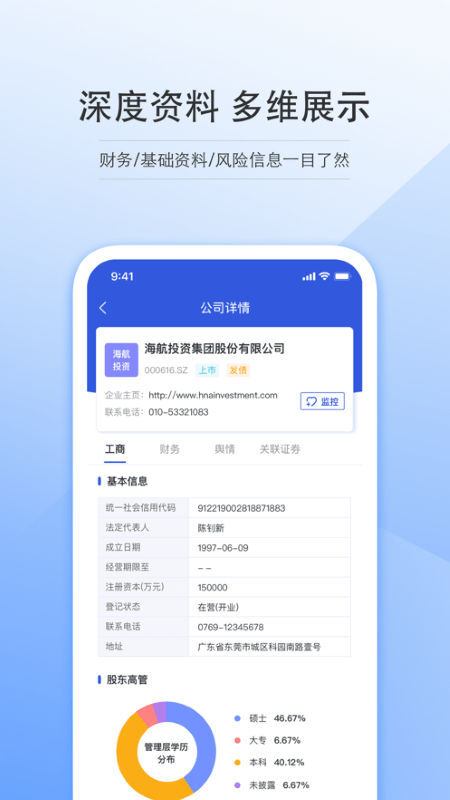 企业深度资料库:整合全国企业工商数据资源,提供包括企业基本信息、重大事项提醒、行业新闻等全方位资料,帮助用户深入了解企业背景和经营状况。