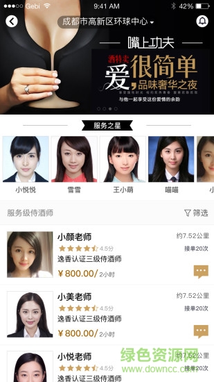 地理位置智能匹配:系统会根据您的所在位置,为您推荐附近的侍酒师资源。您可以根据个人喜好选择心仪的侍酒师,获得专业的酒水推荐和侍酒服务。