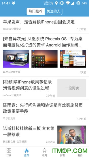 • 智能分类浏览:提供所有、未读、已读或收藏文章列表分类,收藏文章本地缓存方便随时回顾