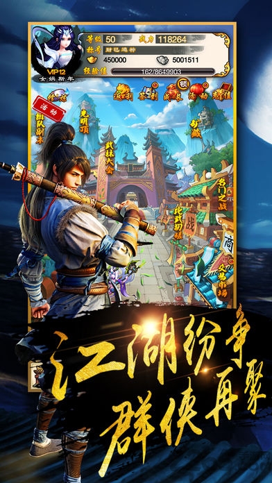 游戏收录了数百种经典江湖武学,从基础心法到绝世神功应有尽有。独特的奇经八脉系统让角色培养更具深度,玩家可以根据自己的喜好打造专属的武林高手。英雄缘分系统、试炼挑战和王者竞技场等多种玩法,让玩家可以充分展现自己的实力与智慧。