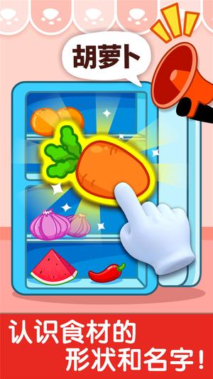 -切菜:通过趣味互动教宝宝认识各种食材,学习正确的切菜方法,培养生活自理能力。(认知水果蔬菜和肉类)