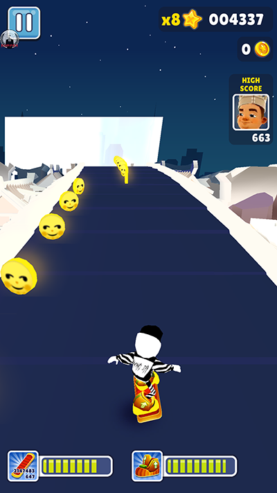 跑到3亿左右,游戏开始掉帧;跑到7亿分左右时,天上几乎捡不到金币(严重掉帧导致的)
