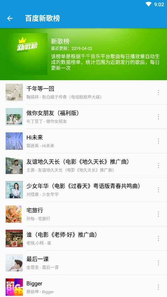 新歌榜单:实时同步千千音乐平台每日歌曲播放数据,帮助用户发现最新发布的优质歌曲。
