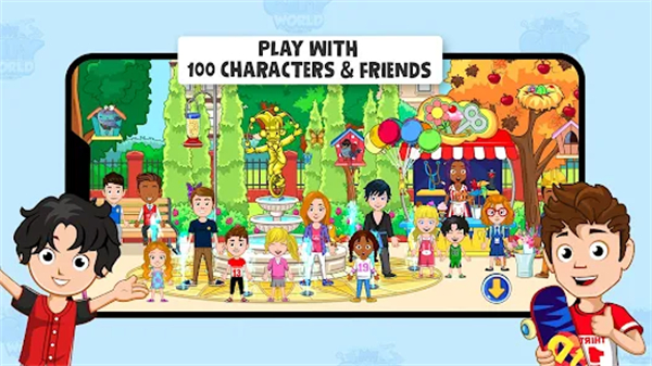 为公主寻找完美的服装,带朋友去城市滑板公园,扮演消防员角色,在街上玩城市游戏!通过添加"我的小镇"和"我的城市"角色来创建世界,并为孩子们探索一个开放的世界。最新加入的"故事剧场"模式允许玩家录制和回放自己创作的小剧场,培养表达能力和叙事思维。