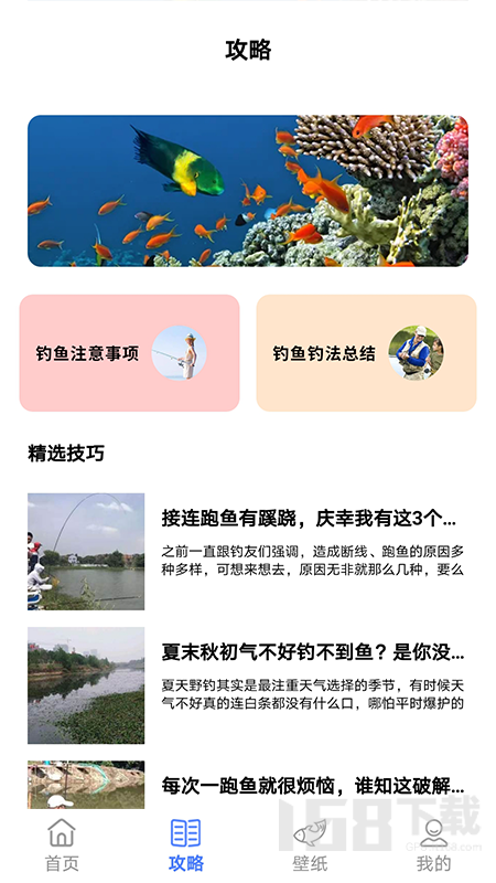 软件内提供了大量精美的海洋生物图片,用户可以根据个人喜好设置为手机壁纸,每天都能欣赏到不同的海洋美景,仿佛置身于蔚蓝世界。在我的中心里,用户可以轻松查看个人信息和浏览足迹,方便管理历史记录和快速查找感兴趣的内容。此外,平台每天都会更新各类海洋知识和钓鱼技巧,确保用户每天都能学到新鲜有趣的内容,让学习成为一种习惯。