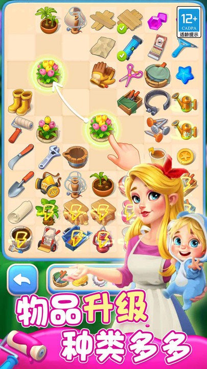 简单直观的操作方式,只需用手指拖动就能快速完成物品合成。独特的卡通欧美画风搭配精湛的美术设计,清新亮丽的配色方案带来极佳的视觉享受。游戏玩法轻松解压,挑战过程能有效缓解压力,让你获得愉悦的游戏体验。写实的风格设计让玩家在享受游戏乐趣的同时,也能感受到装饰家居的成就感。